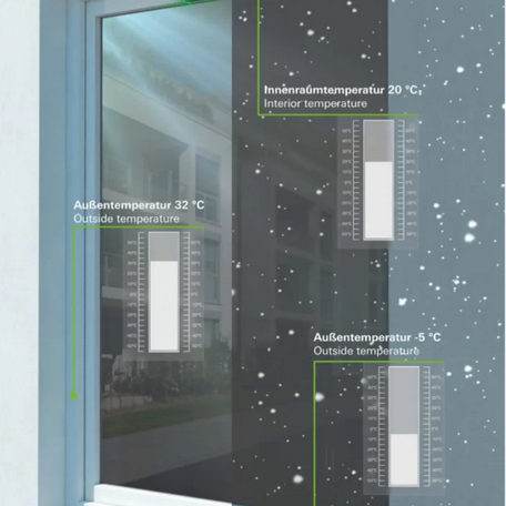 Die Wärme bleibt drinnen, die Kälte draußen. Sieben Kammern innerhalb des Rahmenprofils erzielen eine Wärmedämmung bis auf Passivhausniveau, die bisher ohne aufwendige Zusatzmaßnahmen nicht denkbar war.